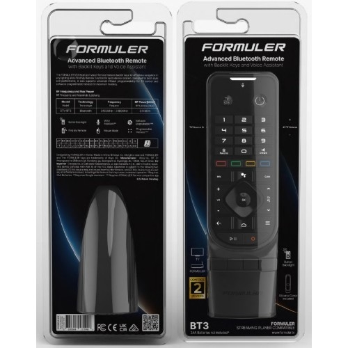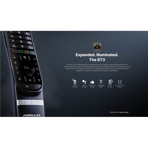 - Den nya GTV-BT3 Bluetooth Voice Remote introducerar en större, ergonomiskt avancerad form fullpackad med nya funktioner. Bakgrundsbelysta knappar lyser för enkel användning i mörkret, medan funktionen Hitta min fjärrkontroll snabbt hittar en borttappad kontroll. TV IR-inlärning ger bekvämlighet med en enda fjärrkontroll, och den uppgraderade Formuler Remote-appen ger smartare anpassning.